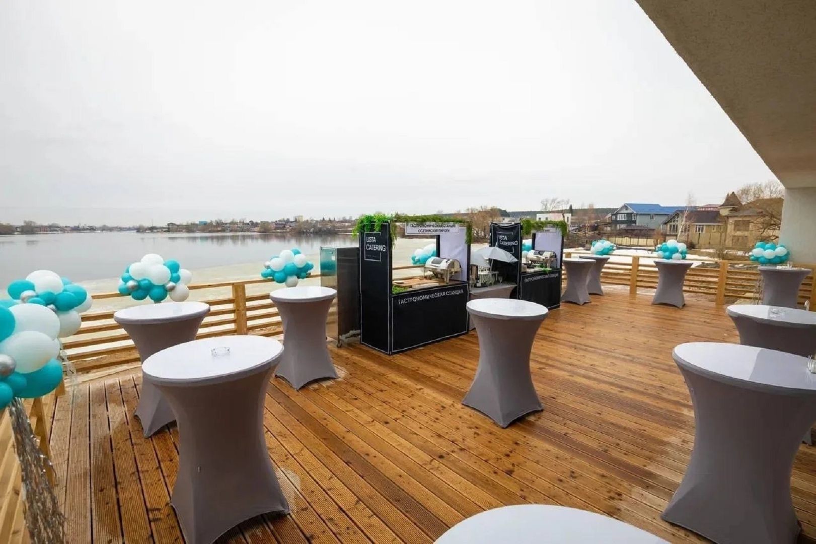 На втором этаже для гостей обустроена лаундж зона, где можно отдохнуть на удобных диванах и насладиться красивым видом на водоём. Кроме того, в здании есть две террасы на разных этажах, где можно устроить выездную церемонию бракосочетания, приветственный фуршет, фотосессию, зону для отдыха.